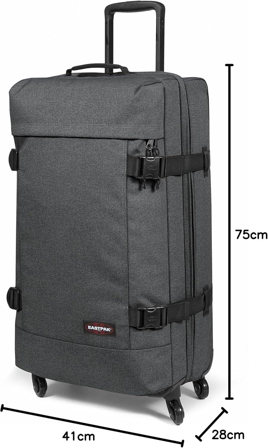 Designed for extended trips and built to handle the demands of modern travel, the Eastpak Trans4 L is a feature-rich, 80L four-wheeled suitcase with thoughtful organization and rugged construction. It offers two spacious main compartments plus a front zip-fastening pocket and internal mesh pocket, so you can separate and access your gear easily. The 360° spinning wheels and telescopic handle with diamond embossing allow for smooth, stable rolling across terminals and streets alike. An integrated TSA-approved lock secures your belongings, while aluminum tubes, protective skids, and reinforced structure enhance durability and support. Whether you're off on a long-haul journey or packing for an extended stay, the Trans4 L delivers reliable space, movement, and peace of mind.